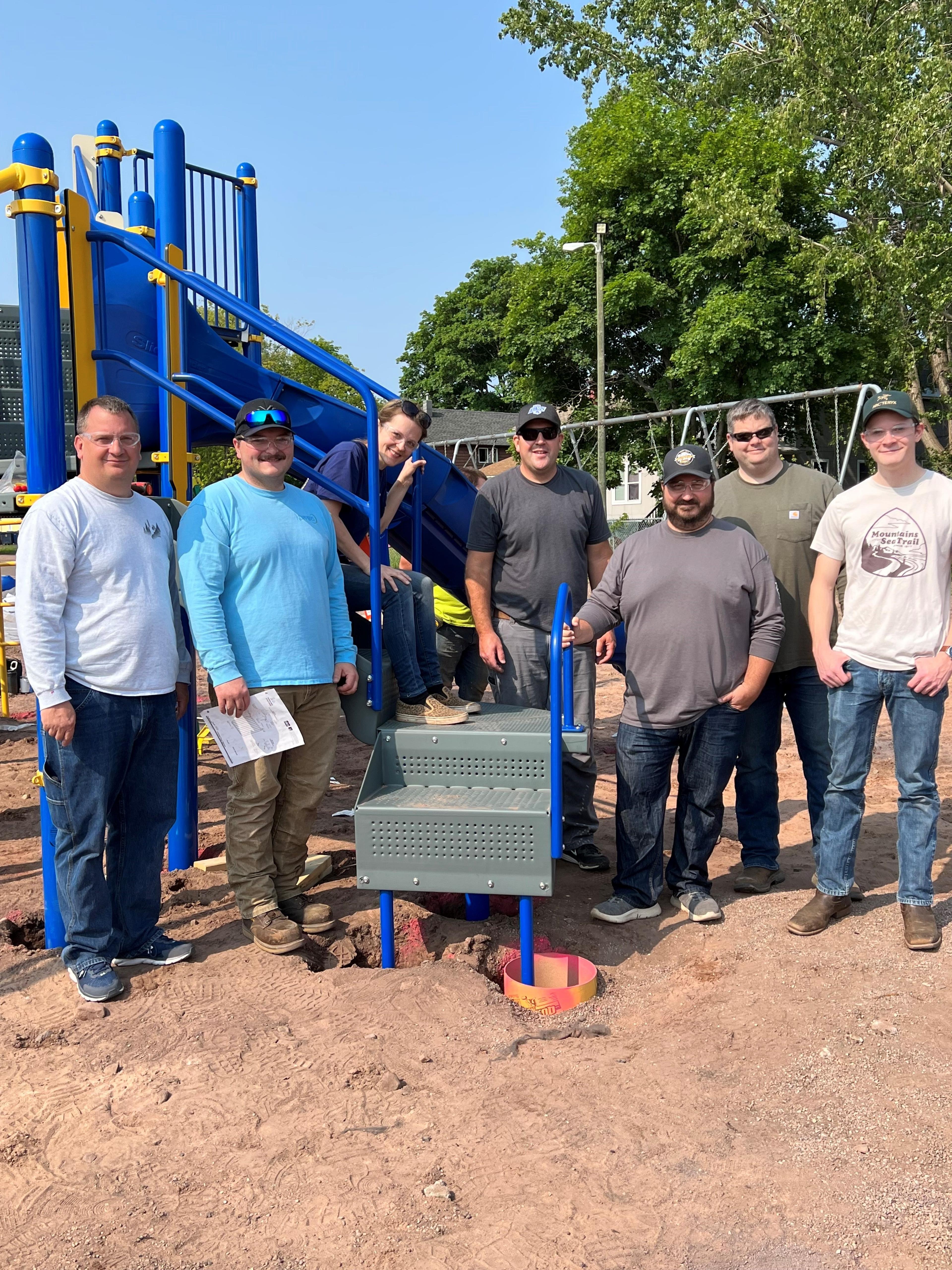 Employees in Hubbell, Michigan, recently volunteered to help install a new playground at a local school!